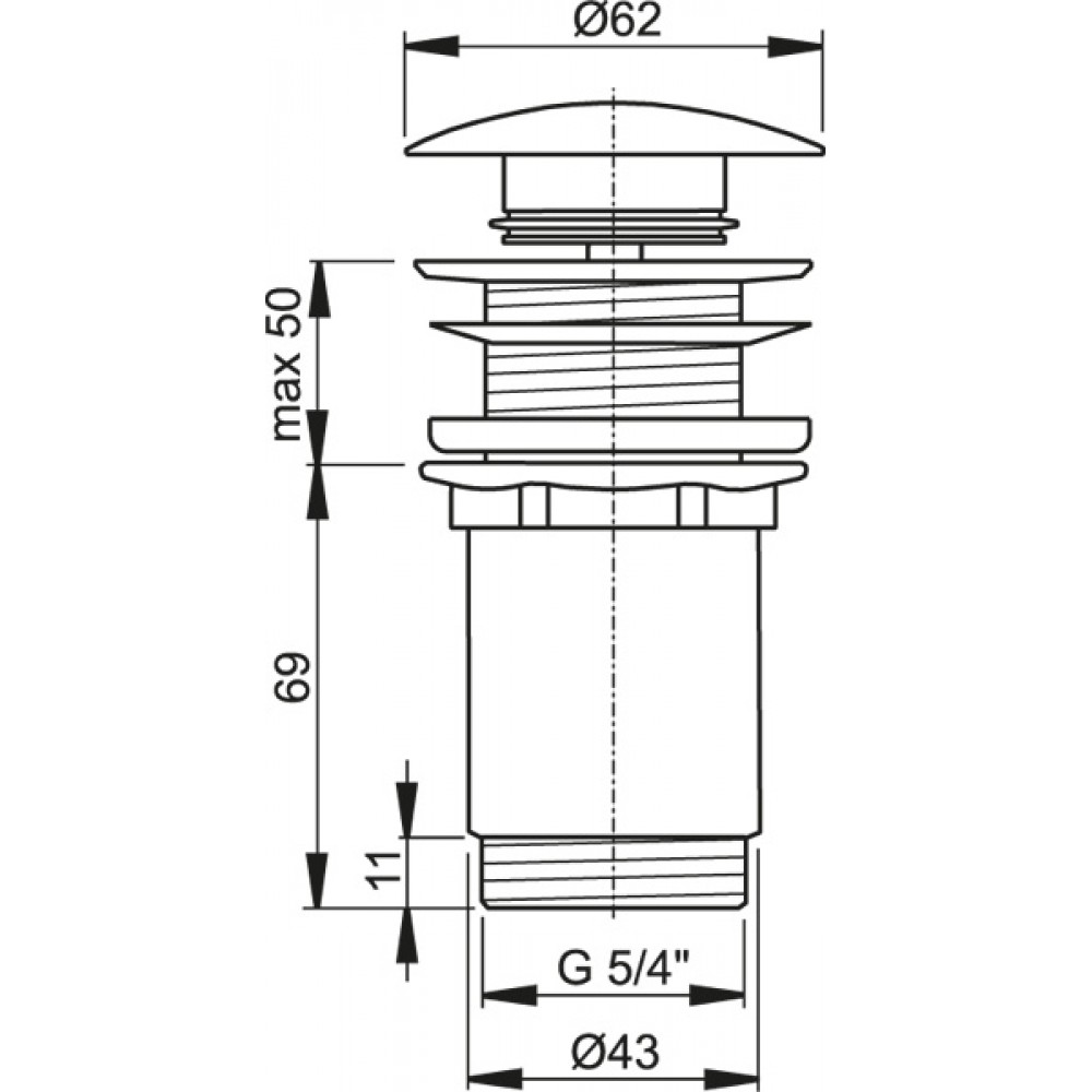 ALCAPLAST Spust umywalki click/clack 5/4" metalowy, duży korek A395Dane techniczne: