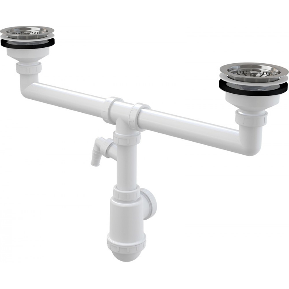 ALCAPLAST Syfon zlewu dwukomorowego z podłączeniem pralki sitka nierdzewne O115 A453Psyfon do zlewów dwukomorowych