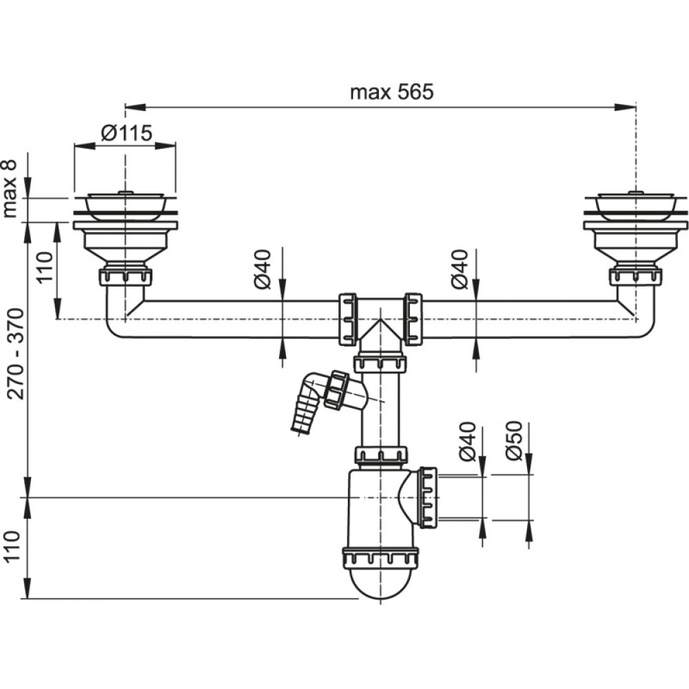 - Pro odeslání do Česka navštivte ALCAPLAST Sifon pro dvoudřez s nerezovými mřížkami průměr 115mm a přípojkou A453P
