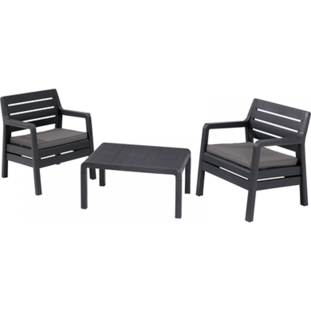 ALLIBERT Zestaw mebli ogrodowych DELANO grafitowy/szary 17201164Zestaw mebli ogrodowych Delano pozowli Ci na stworzenie przytulnego kącika relaksacyjnego na świeżym powietrzu.