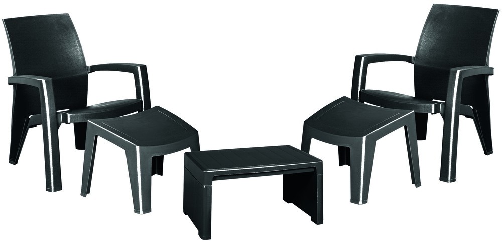 ALLIBERT Zestaw mebli ogrodowych LAGO MAXI relax antracyt 218107Zestaw mebli ogrodowych Allibert Lago Maxi relax, składający się ze stolika, 2 foteli oraz 2 podnóżków