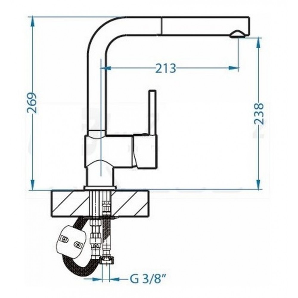 W komplecie: perlator, wężyki przyłączeniowe G3/8'', mocowanie.