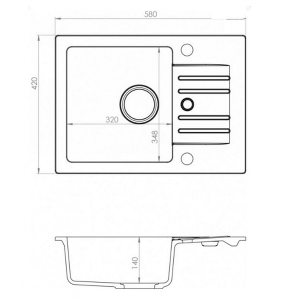 - Wymiary zlewozmywaka: 580 x 420 mm