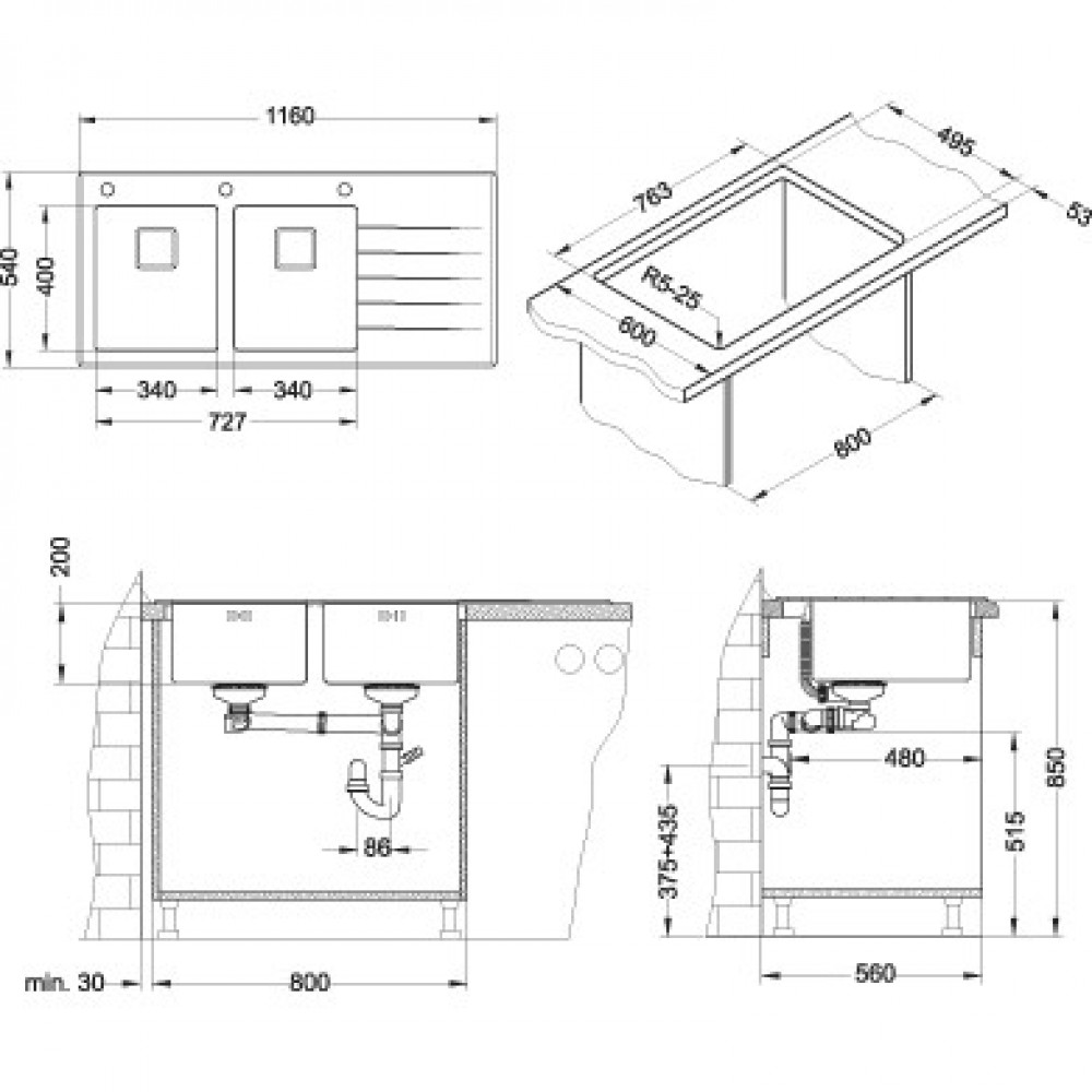 - Pro odeslání do Česka navštivte ALVEUS Crystalix 30 kuchyňský dřez, 1160 x 540 mm, levý, černá 1070319