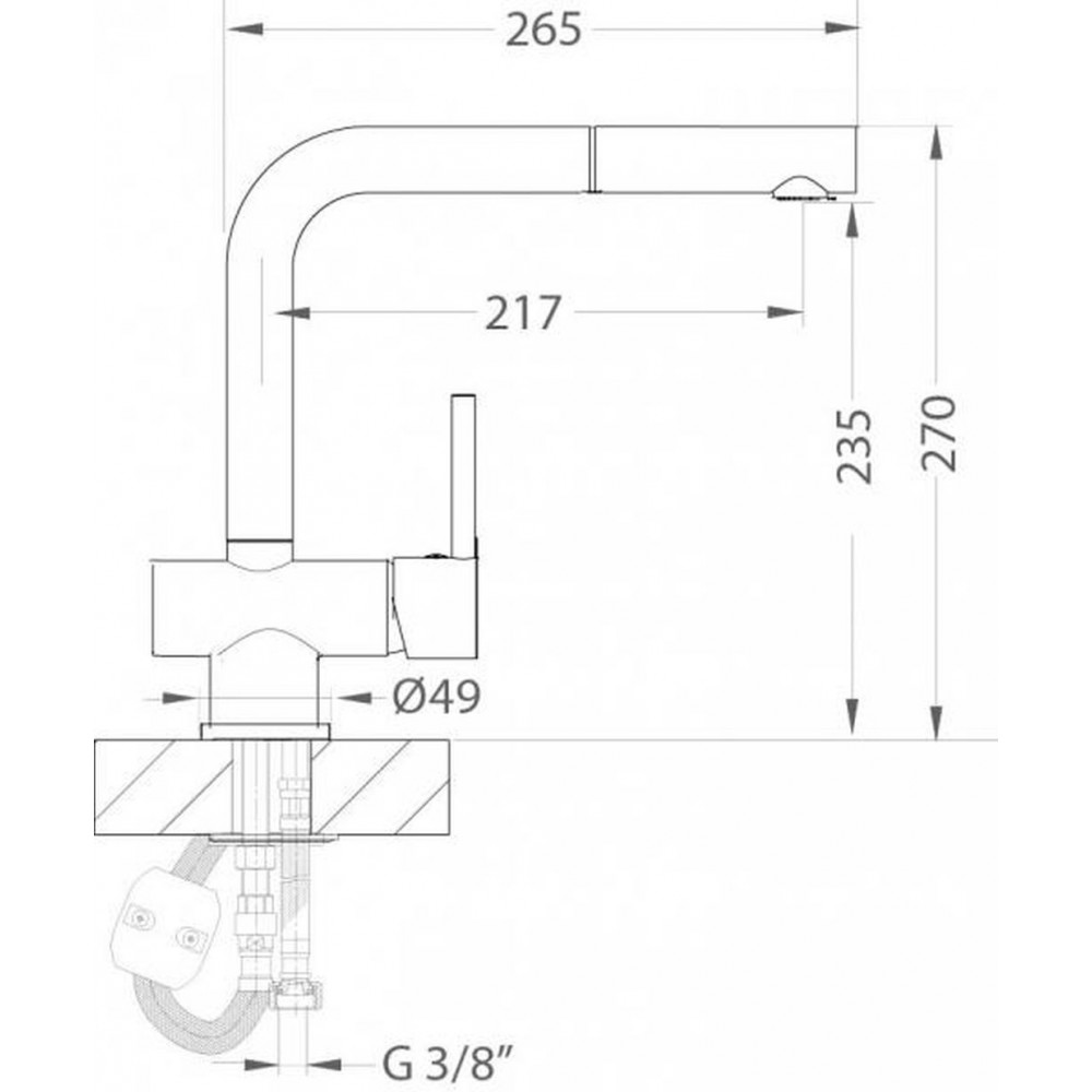 W komplecie: perlator, wężyki przyłączeniowe G3/8'', mocowanie.