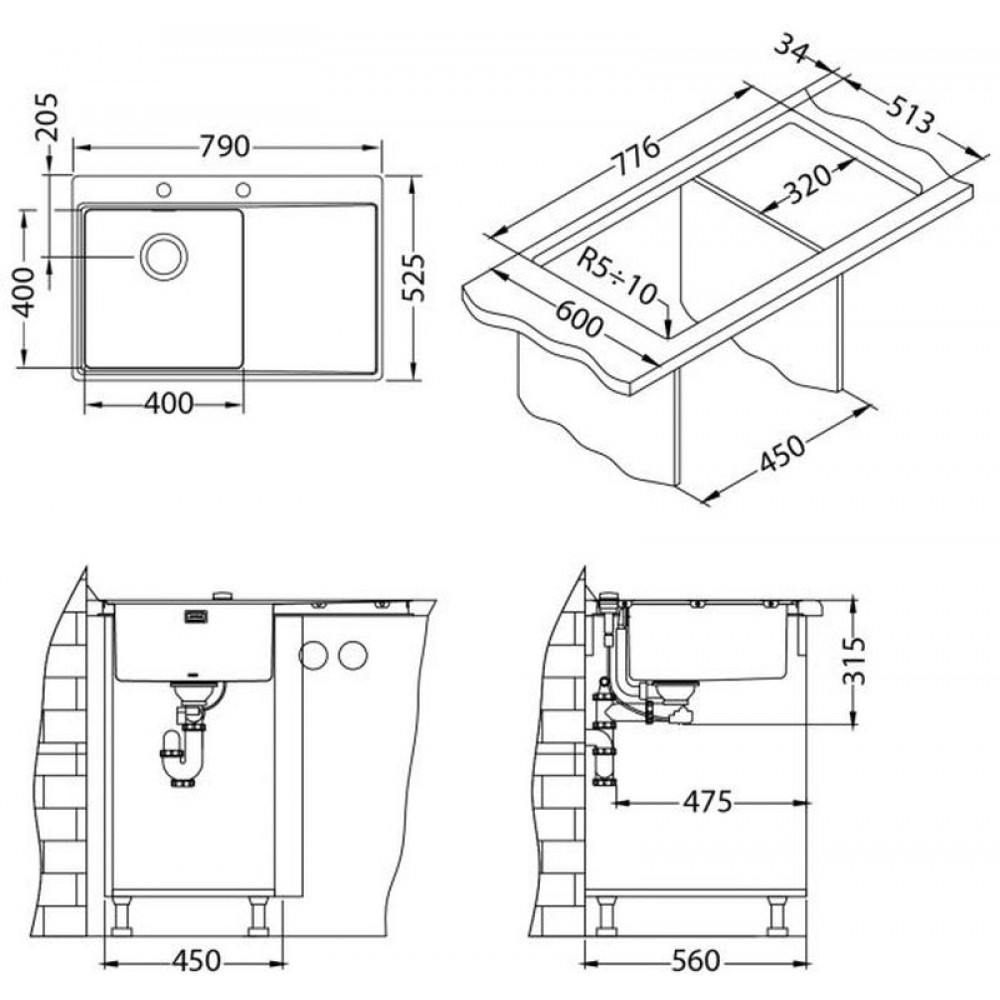 - Wymiary zlewozmywaka: 790 x 525 mm