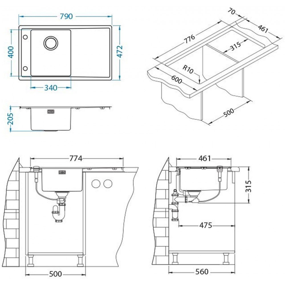 - Wymiary zlewozmywaka: 790 x 472 mm