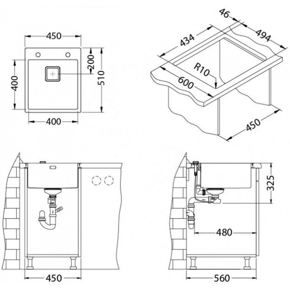 - Wymiary zlewozmywaka: 450 x 510 mm