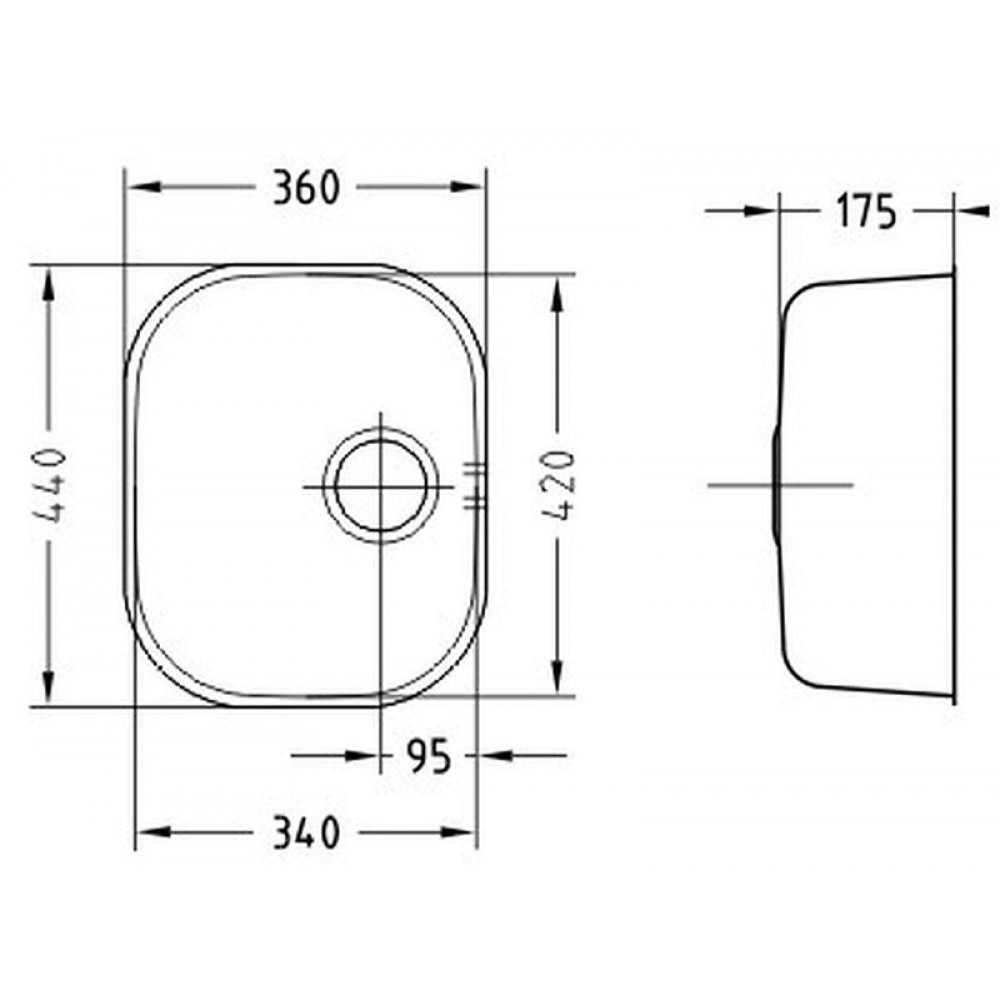 - Wymiary zlewozmywaka: 340 x 420 mm
