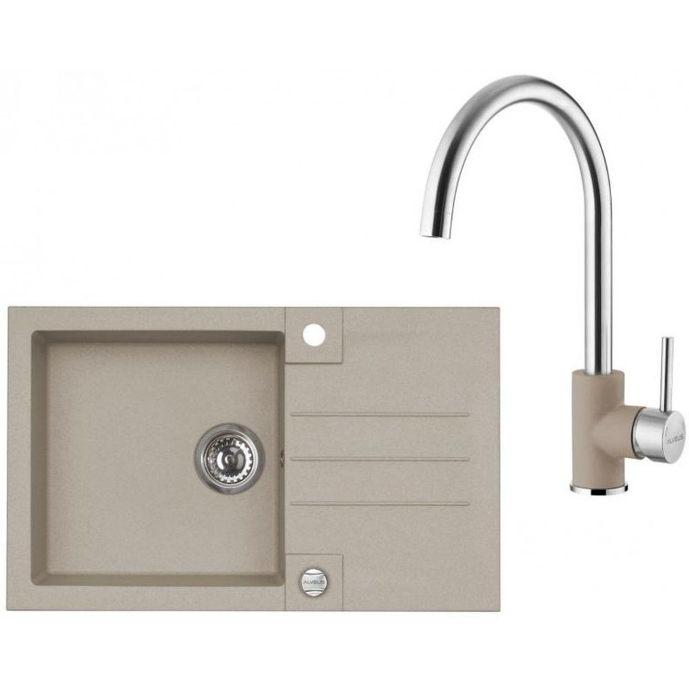 ALVEUS Zestaw ROCK 130 Zlewozmywak 780x480 mm + bateria ELZA, Pebble 02