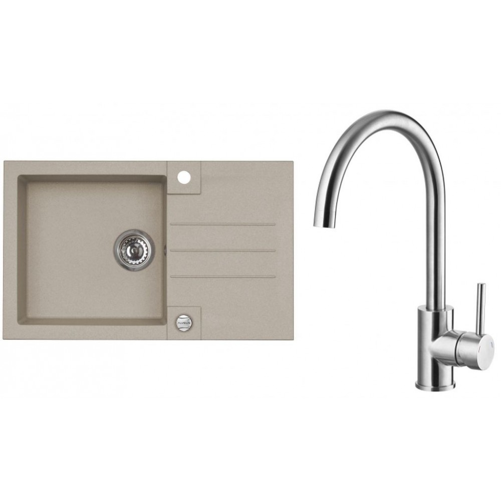 ALVEUS Zestaw ROCK 130 Zlewozmywak 780x480 mm + bateria ELZA, Pebble 02 + stal