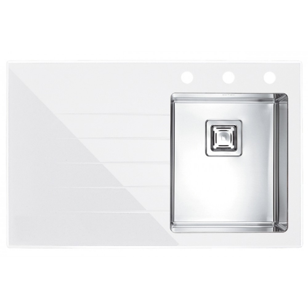 ALVEUS CRYSTALIX 10 Zlewozmywak szklany, biały/satyna, 860 x 540 mm, prawy 1099632