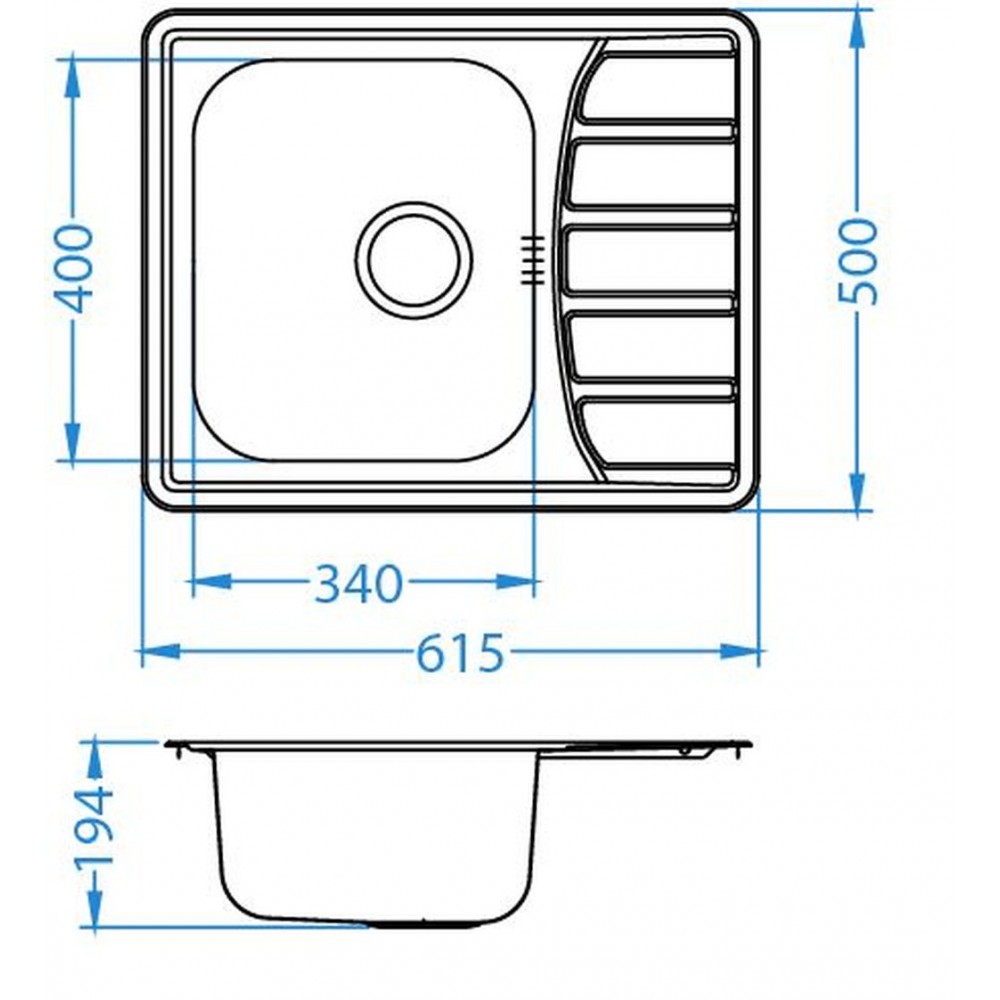 - Wymiary zlewozmywaka: 615 x 500 mm