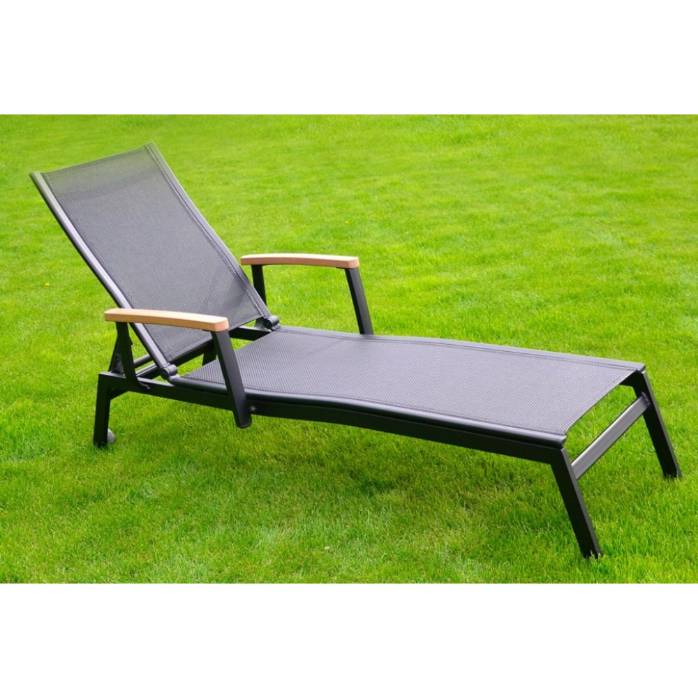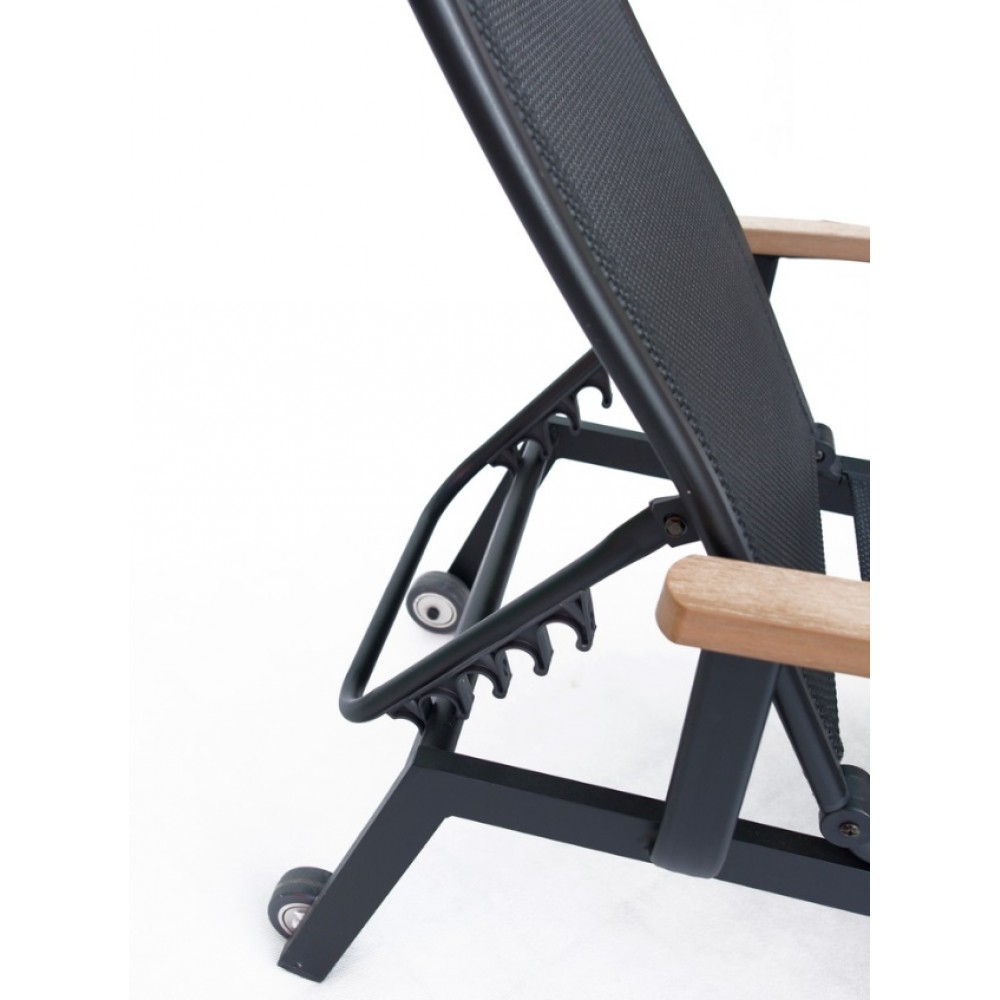 Wykonane z aluminium oraz wysokiej jakości tkaniny (4x4 mm) + podłokietniki w kolorze teak