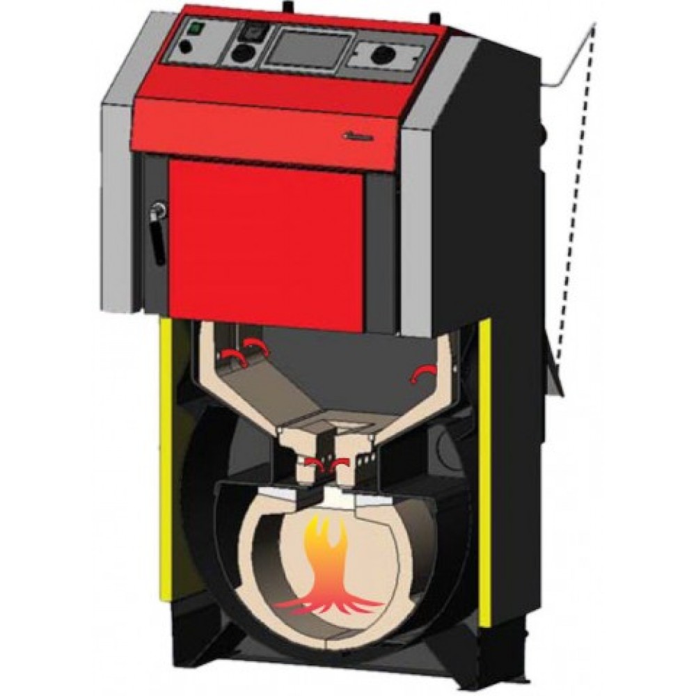 Kotły są skonstruowane w celu spalania drewna wykorzystując zasadę generatorowego zgazowania z wykorzystaniem wentylatora wyciągowego, który wysysa spaliny z kotła, lub wgania powietrze do wnętrza kotła. Korpus kotła wykonany jest z blachy o grubości 3-8 mm. Składa się z komory na paliwo, która w dolej części wyposażona jest w ceramiczną kształtkę z podłużnym otworem zapewniającym przepływ spalin i gazów. Komora dopalania jest również wyposażona w kształtki ceramiczne. W tylnej części kotła znajduje się kanał spalinowy, w górnej części wyposażony w zawór do rozpalania. Górna część kanału spalinowego podłączona jest poprzez wylot do przewodu kominowego.