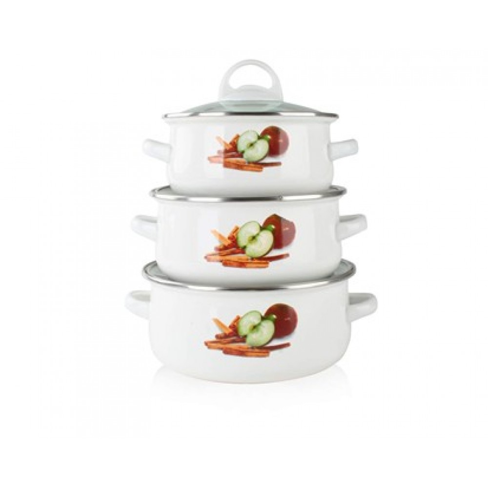 BANQUET 6-częściowy zestaw garnków emaliowanych Apple 1306SMAP03-A6-częściowy zestaw zawiera garnki emaliowane ze szklanymi pokrywkami
