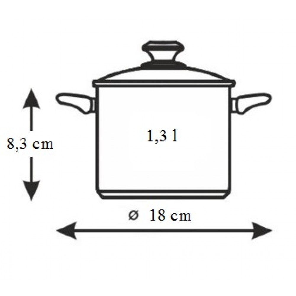 O średnicach 16,18,20 cm o objętościach 0,9l, 1,3L, 1,9L Grubość materiału wynosi 0,6 mm