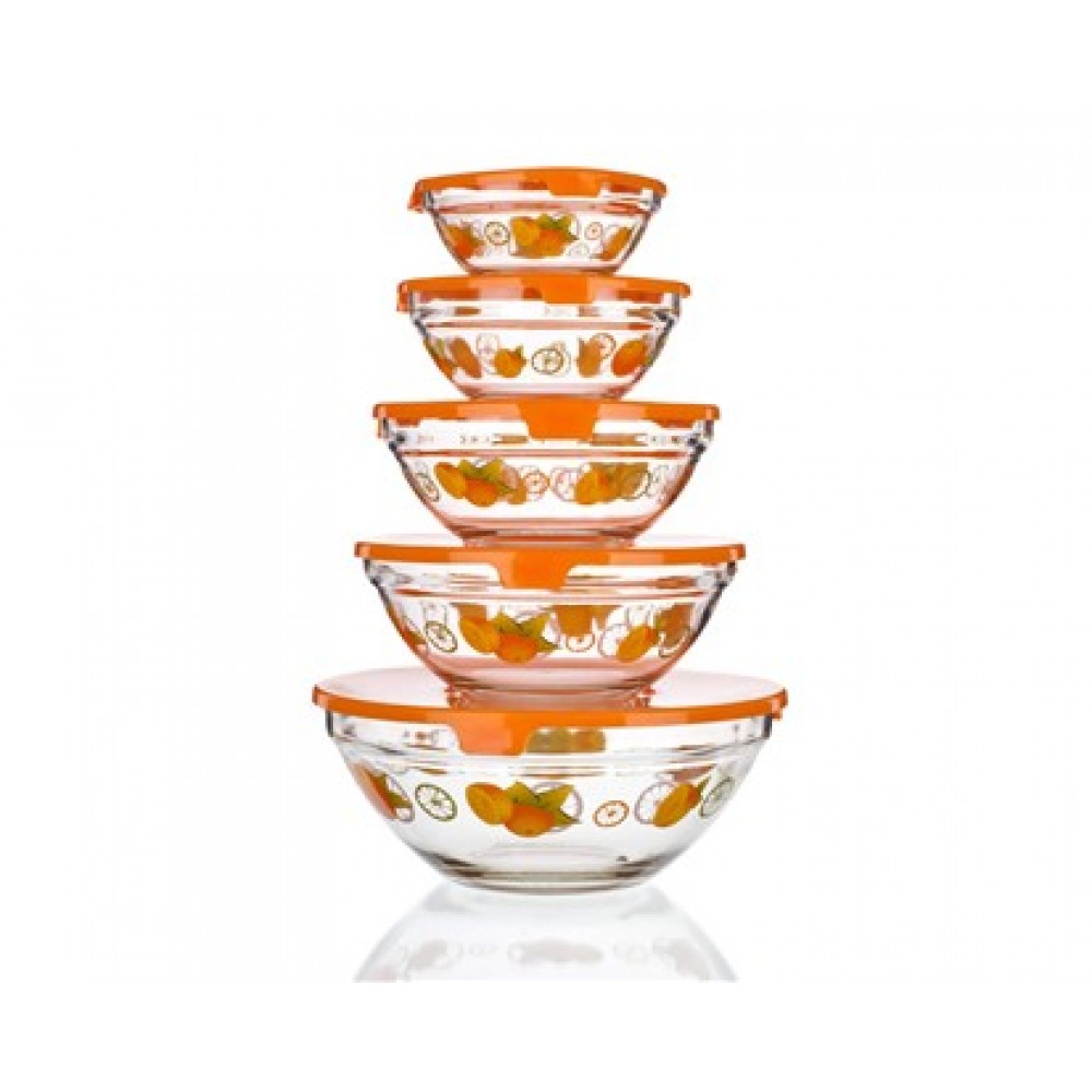 BANQUET Naranjas Zestaw misek z plastikowymi pokrywkami 5 szt. pomarańczowe 04BTP25D55-częściowy zestaw misek z pokrywkami plastikowymi