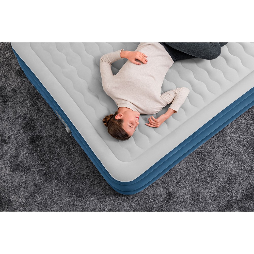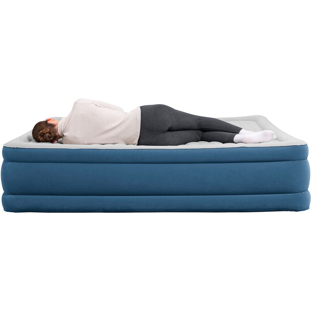 Ten materac nadmuchiwany ma flokowaną powierzchnię do spania, która jest tak samo wygodna, jak solidna i trwała. Zasypiaj wygodnie na spiralnych elementach nośnych, które zostały specjalnie zaprojektowane, aby naśladować sprężyny tradycyjnego materaca. Ponadto otaczająca konstrukcja ramy zapobiega zsuwaniu się przez całą noc.