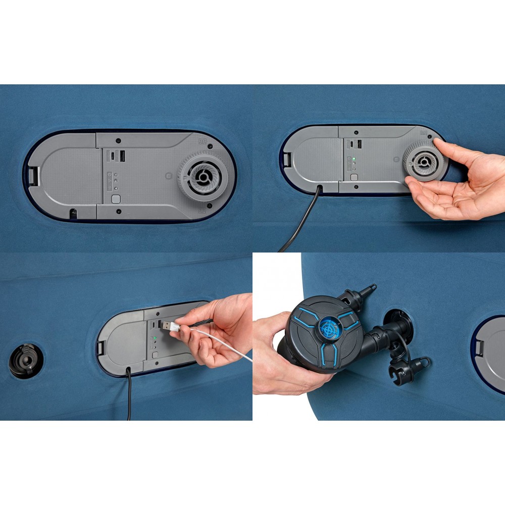 Podwójna pompa AlwayzAire zapewnia napompowanie materaca przez całą noc. Wewnętrzne czujniki monitorują ciśnienie powietrza, a pompa cicho dopompuje łóżko podczas snu, aby zachować zamierzoną jędrność, dzięki czemu nigdy nie obudzisz się na ziemi. System podwójnej pompy napełnia łóżko w zaledwie 3 minuty, zmniejsza utratę powietrza i eliminuje nadmierne napompowanie. Ponadto zawiera port USB do łatwego i wygodnego ładowania urządzenia. Aby uzyskać najlepsze rezultaty, podłącz łóżko na całą noc. Bez zasilania, nie ma problemu — to łóżko jest również kompatybilne z ręcznymi pompkami do pompowania, ale zasilanie elektryczne jest niezbędne do prawidłowego działania czujników podwójnej pompy.