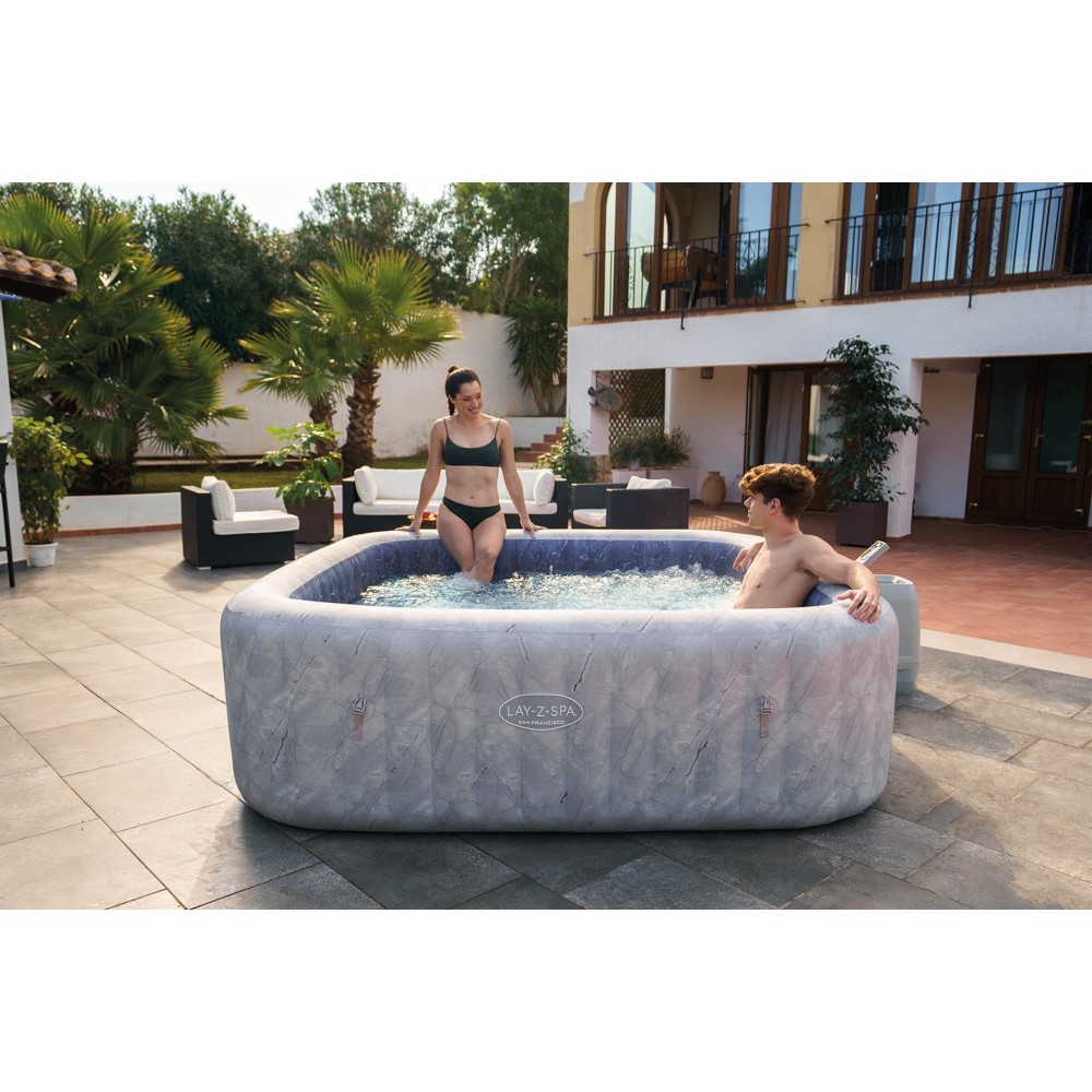 BESTWAY Lay-Z-Spa San Francisco HydroJet Pro™ 6001Q to luksusowe dmuchane jacuzzi do ogrodu lub na taras, oferujące wydajny system HydroJet™, energooszczędną pracę i stylowy design. Idealne do relaksu i wellness z rodziną i przyjaciółmi przez cały rok.