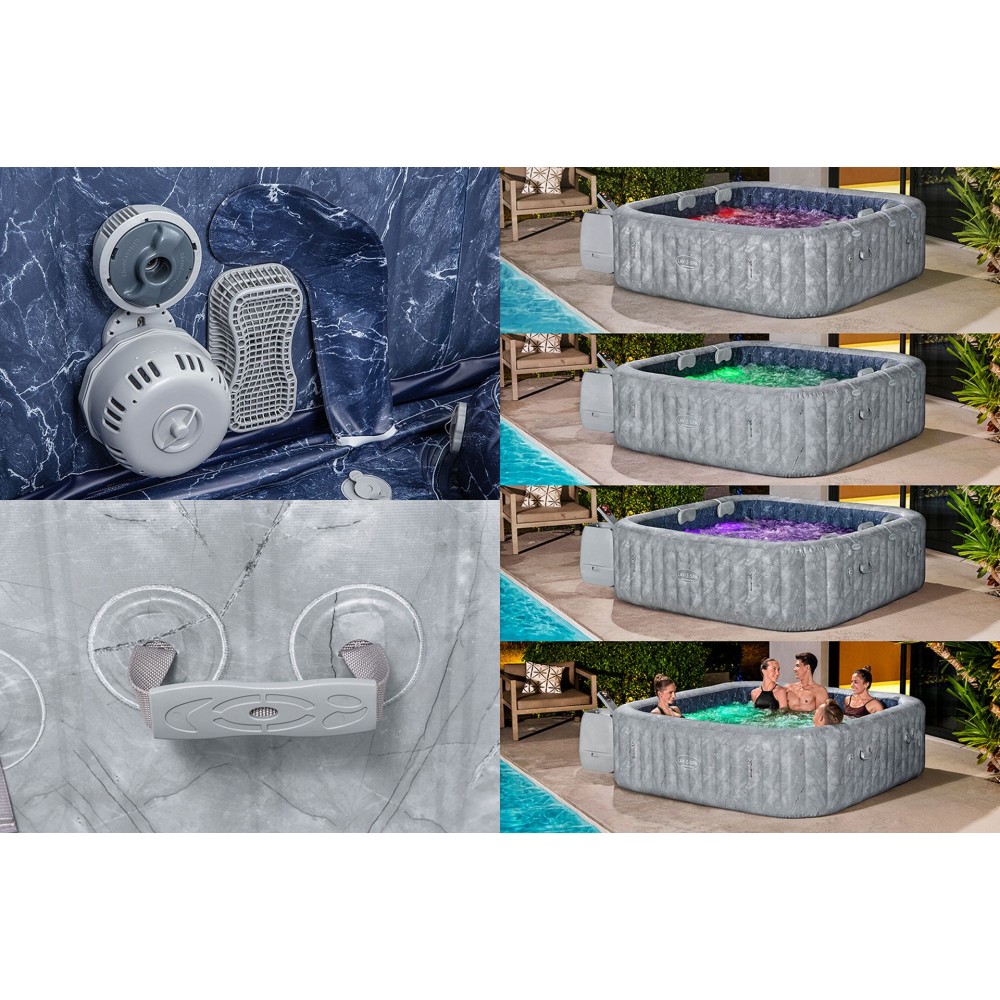 BESTWAY Lay-Z-Spa San Francisco HydroJet Pro™ 6001Q to nowoczesne dmuchane jacuzzi do ogrodu lub na taras, które łączy przestronność, energooszczędność i maksymalny komfort. Dzięki 10 dyszom HydroJet™, 180 dyszom AirJet™, pojemności 1.180 litrów i miejscu dla aż 7 dorosłych osób możesz cieszyć się relaksującym wellness w każdym momencie roku.