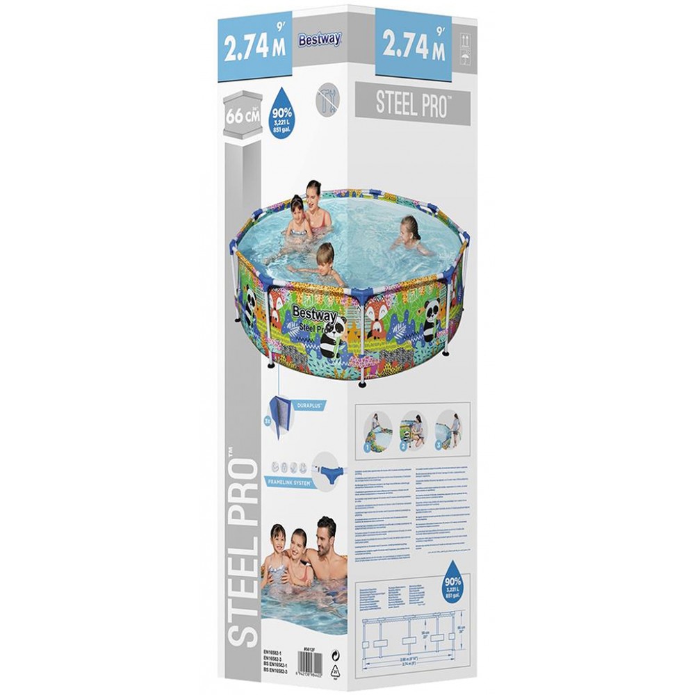 - Um nach Deutschland zu versenden, besuchen Sie BESTWAY Steel Pro Frame Pool ohne Pumpe, 274 x 66 cm, buntes Panda- und Fuchs-Design 5612F