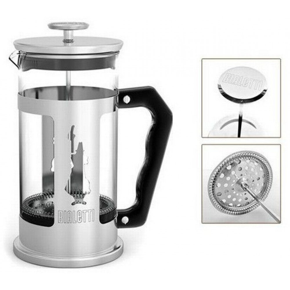 BIALETTI French Press Zaparzarka do kawy/herbaty, 0,350 l, stal nierdzewna 2170199314Zaparzacz do kawy wykonany z żaroodpornego i trwałego szkła borosilikonowego oraz wysokiej jakości stali nierdzewnej 18/10. Posiada również wygodną, profilowaną rączkę bakelitową.