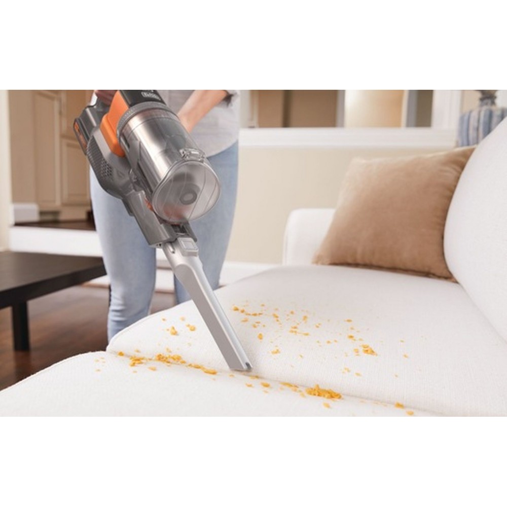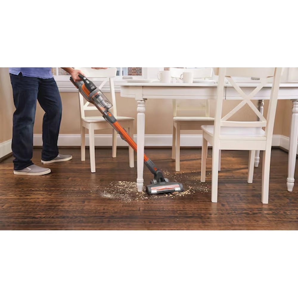 Black & Decker BHFEV182C-QW to wydajny i praktyczny odkurzacz akumulatorowy, idealny do czyszczenia wszystkich rodzajów podłóg (płytki, dywan, drewno, linoleum) oraz trudno dostępnych miejsc, takich jak schody czy wnętrze samochodu dzięki odłączanej głowicy. Z akumulatorem 18V i innowacyjnym systemem wentylacji z podwójną filtracją zapewnia optymalną moc ssania. Możesz wybrać jedną z trzech prędkości w zależności od tego, czy zależy Ci na dłuższym czasie pracy czy większej mocy ssania. Urządzenie jest wyposażone w silnikową szczotkę obrotową zapobiegającą splątywaniu włosów i sierści.