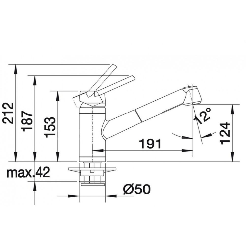 Wysokość baterii z podniesionym zaworem: 21,2 cm