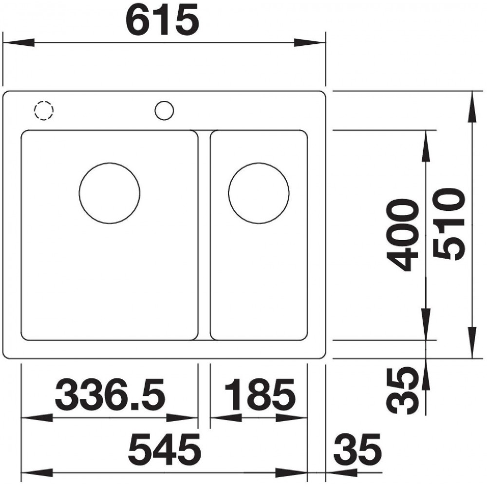 - Wymiary zlewozmywaka: 615/510 mm