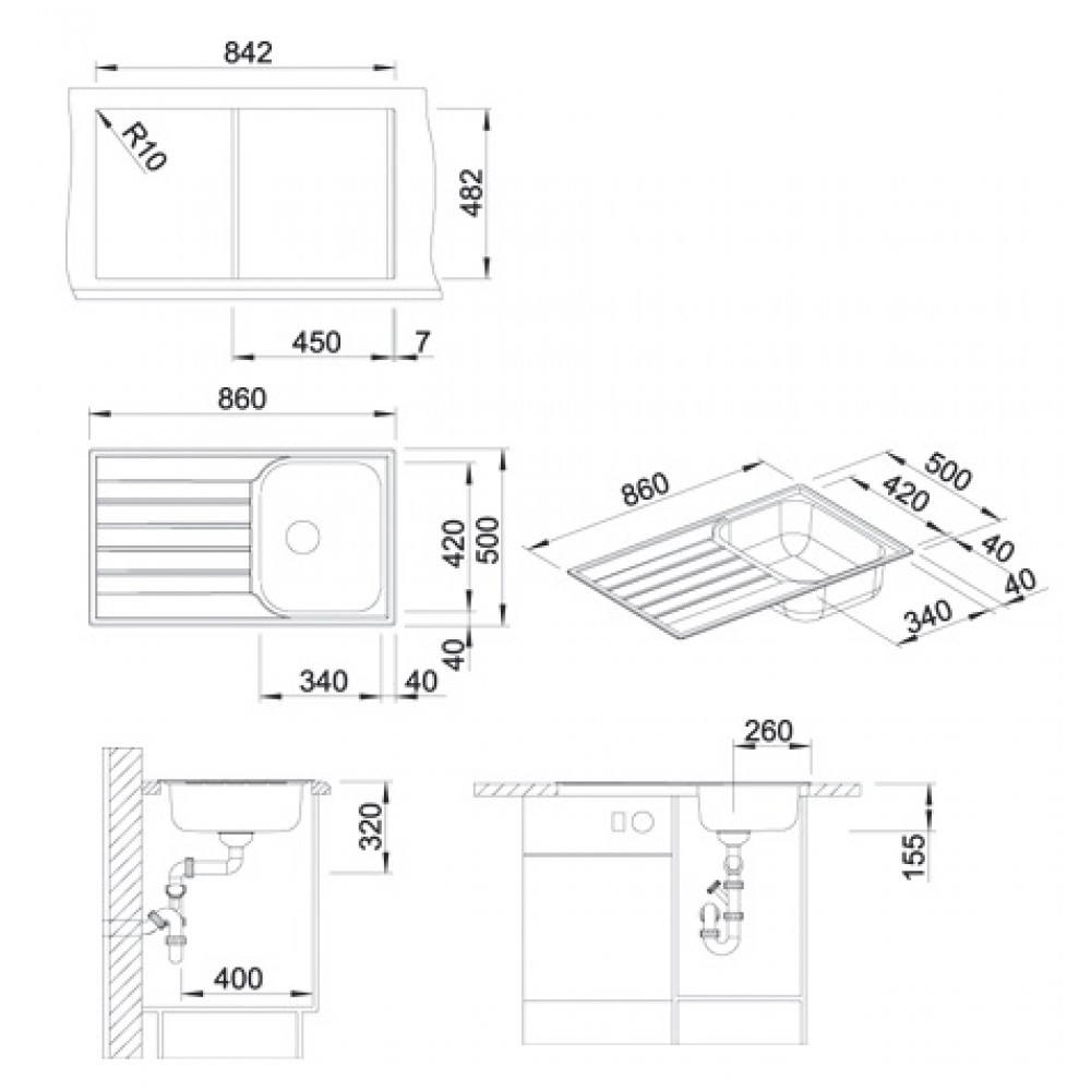 - zlew posiada kompletny syfon i odpływy