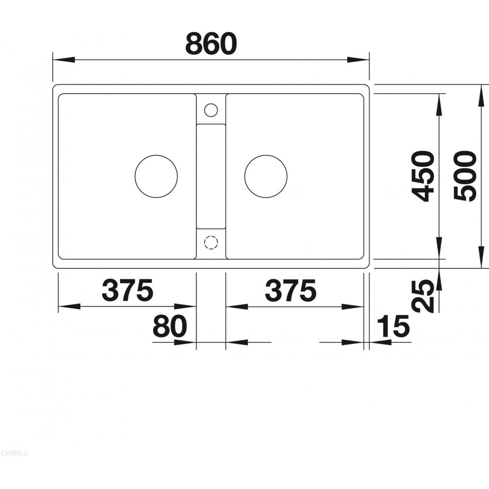 - Wymiary zlewozmywaka:860/500 mm