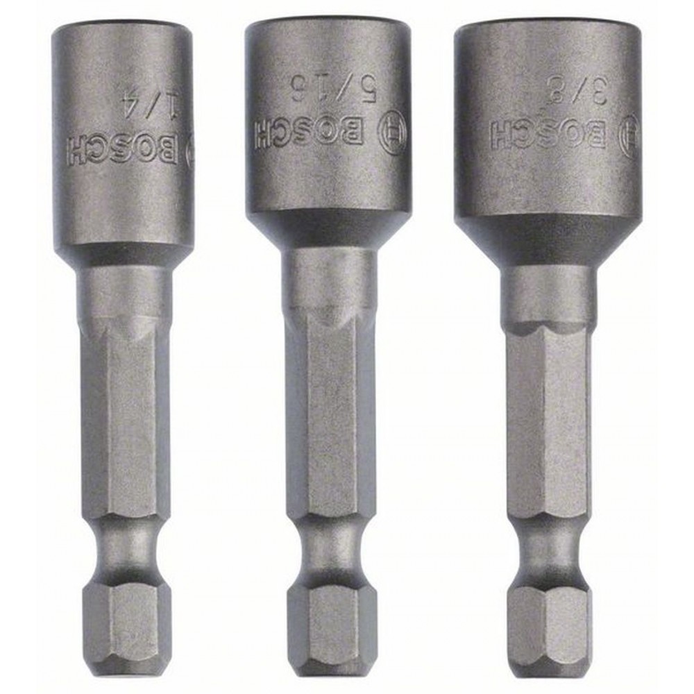 BOSCH 3-częściowe opakowanie kluczy nasadowych, 50 mm, 1/4", 3/8", 5/16" 2608551077- Klucz nasadowy z magnesem trwałym
