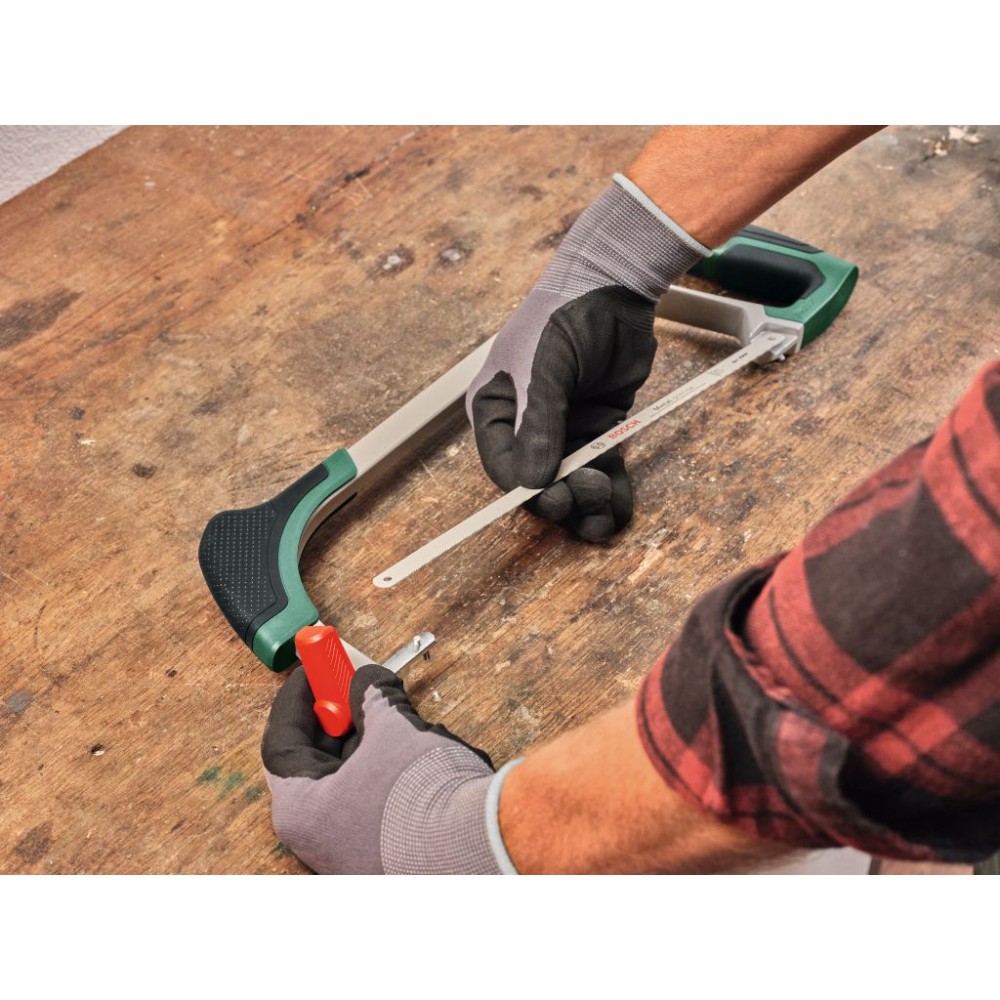BOSCH Piła do metalu 300 mm (1600A02ZA8) to uniwersalna piła ramowa przeznaczona do cięcia metalu, plastiku i drewna. Wyposażona w trwałe brzeszczoty bimetalowe o długości 300 mm i drobnym podziale 24 TPI, zapewnia czyste i precyzyjne cięcia. Twardość zębów w zakresie 62–68 HRC gwarantuje długą żywotność nawet przy intensywnym użytkowaniu.