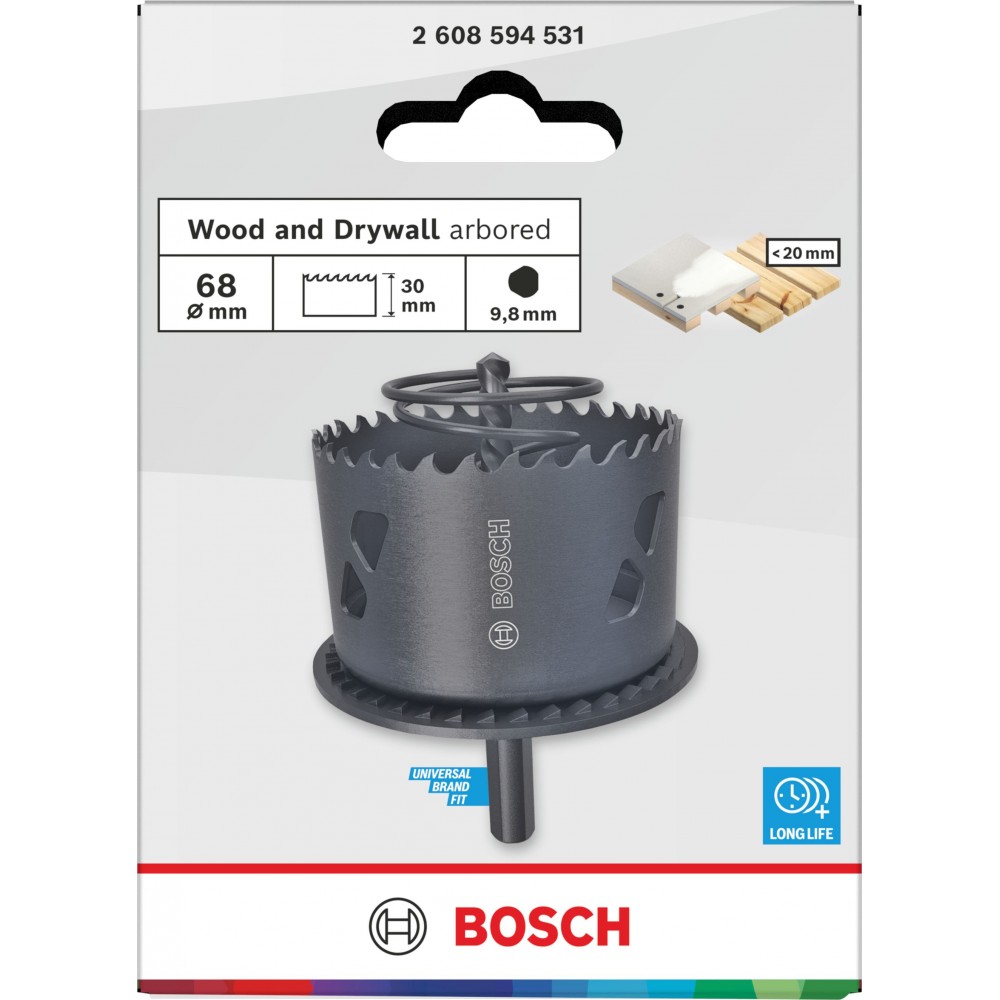 BOSCH Piła otwornica do drewna i płyt kartonowo-gipsowych z nawiertakiem, 68 × 2608594531