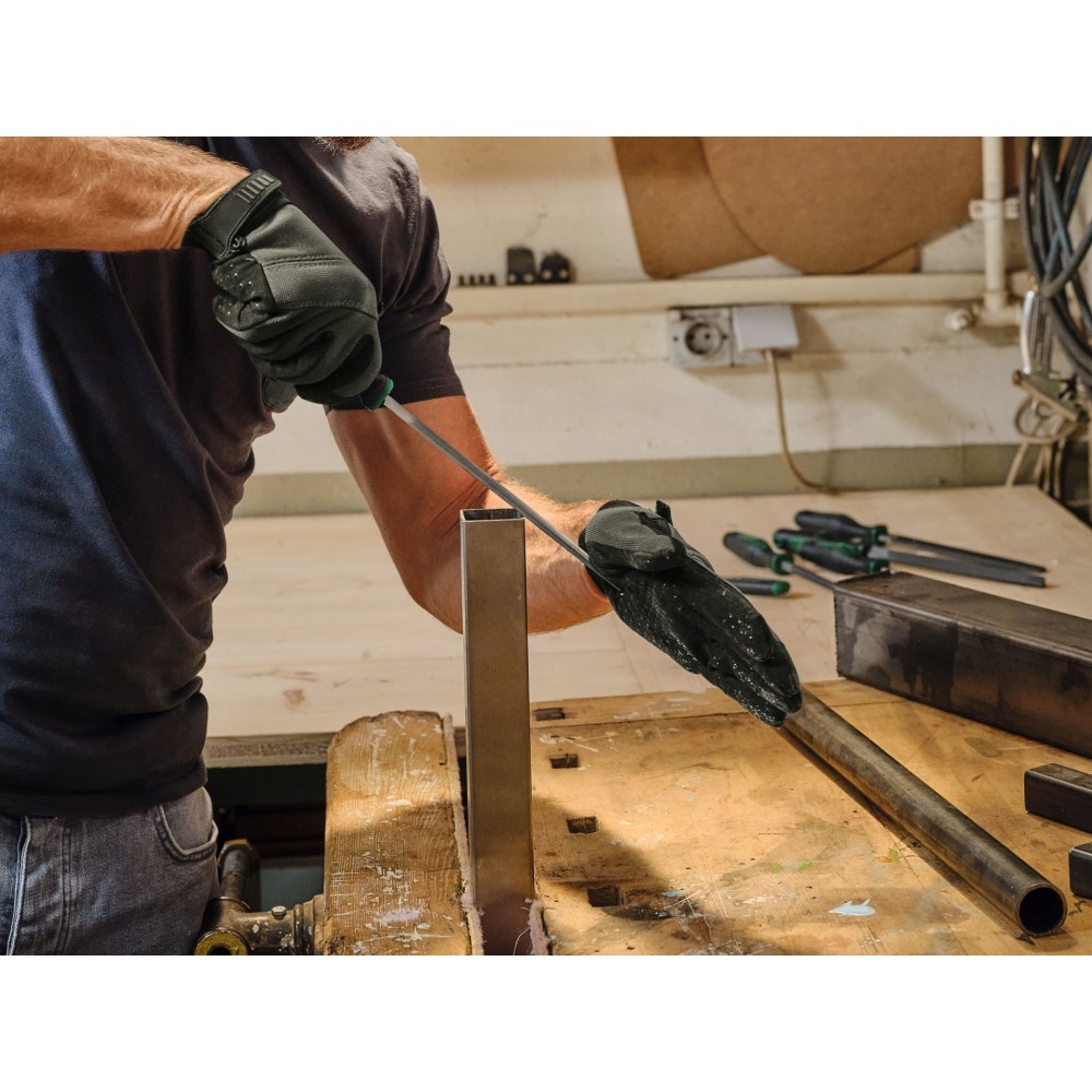 - Wytrzymały pilnik półokrągły do metalu 200 mm / 8" zapewniający wydajną obróbkę elementów metalowych