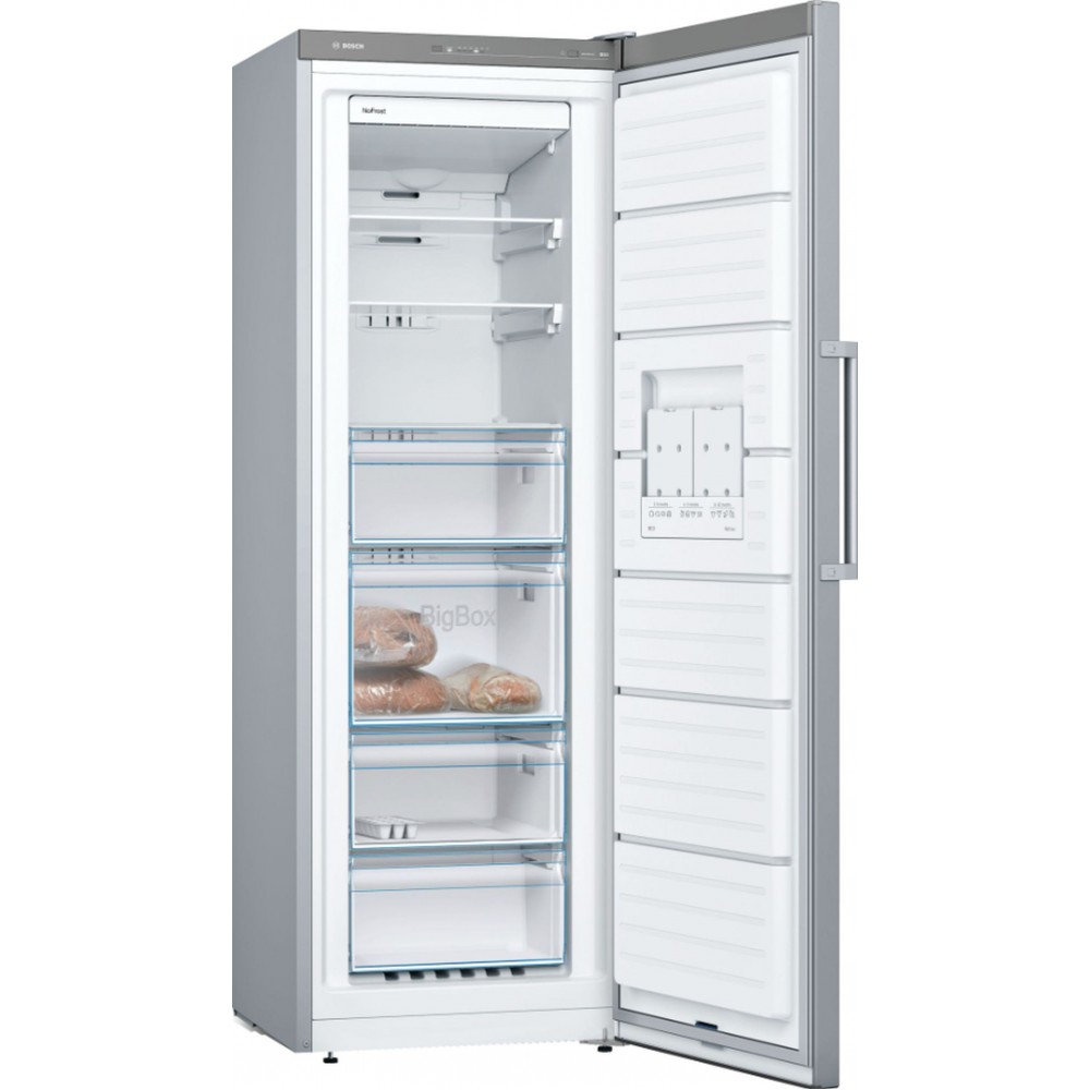 Jeżeli szukasz wolnostojącej zamrażarki NoFrost o wymiarach 176 x 60 cm z przejrzystym układem wnętrza i praktycznymi funkcjami, Bosch Serie 4 GSN33VLEP będzie doskonałym wyborem. Duży użyteczny volumen, elastyczność systemu VarioZone oraz dodatkowa przestrzeń w szufladzie BigBox zapewniają komfort użytkowania każdego dnia.
