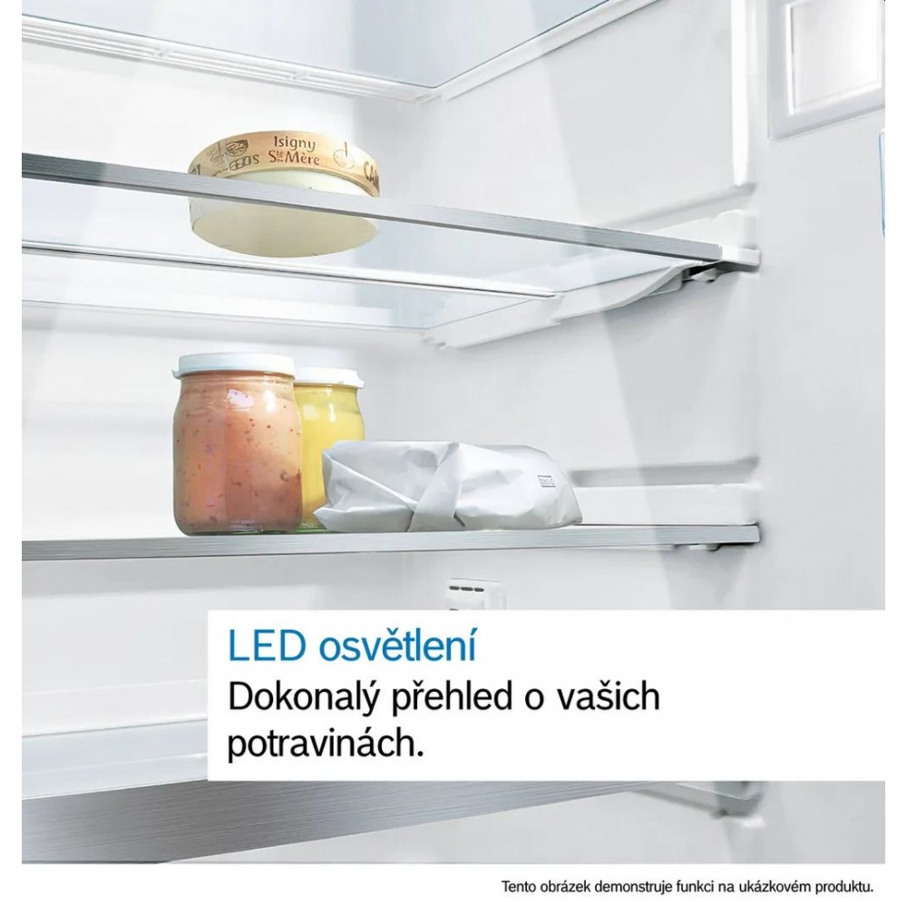 Prostorný, przeznaczony do zabudowy chłodziarko-zamrażarka z funkcją VitaFresh XXL <0°>, No Frost i stabilną temperaturą utrzyma Twoją żywność świeżą na dłużej. Wszystkie mrożonki pozostaną wolne od szronu i doskonale widoczne dzięki dodatkowemu oświetleniu w zamrażarce.