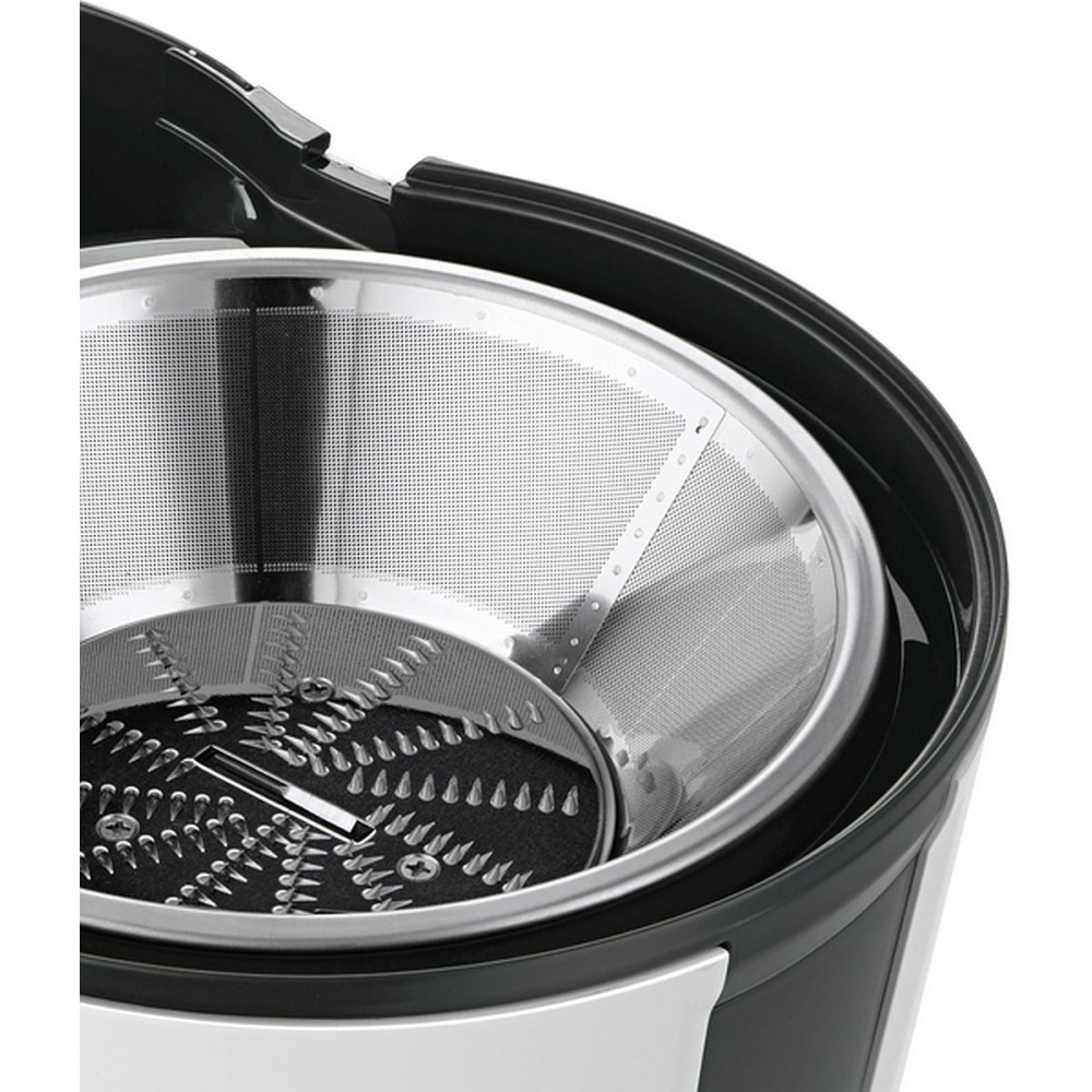 • Filtr ze stali szlachetnej pozwalający na dokładne wyciśnięcie soku z owoców i warzyw