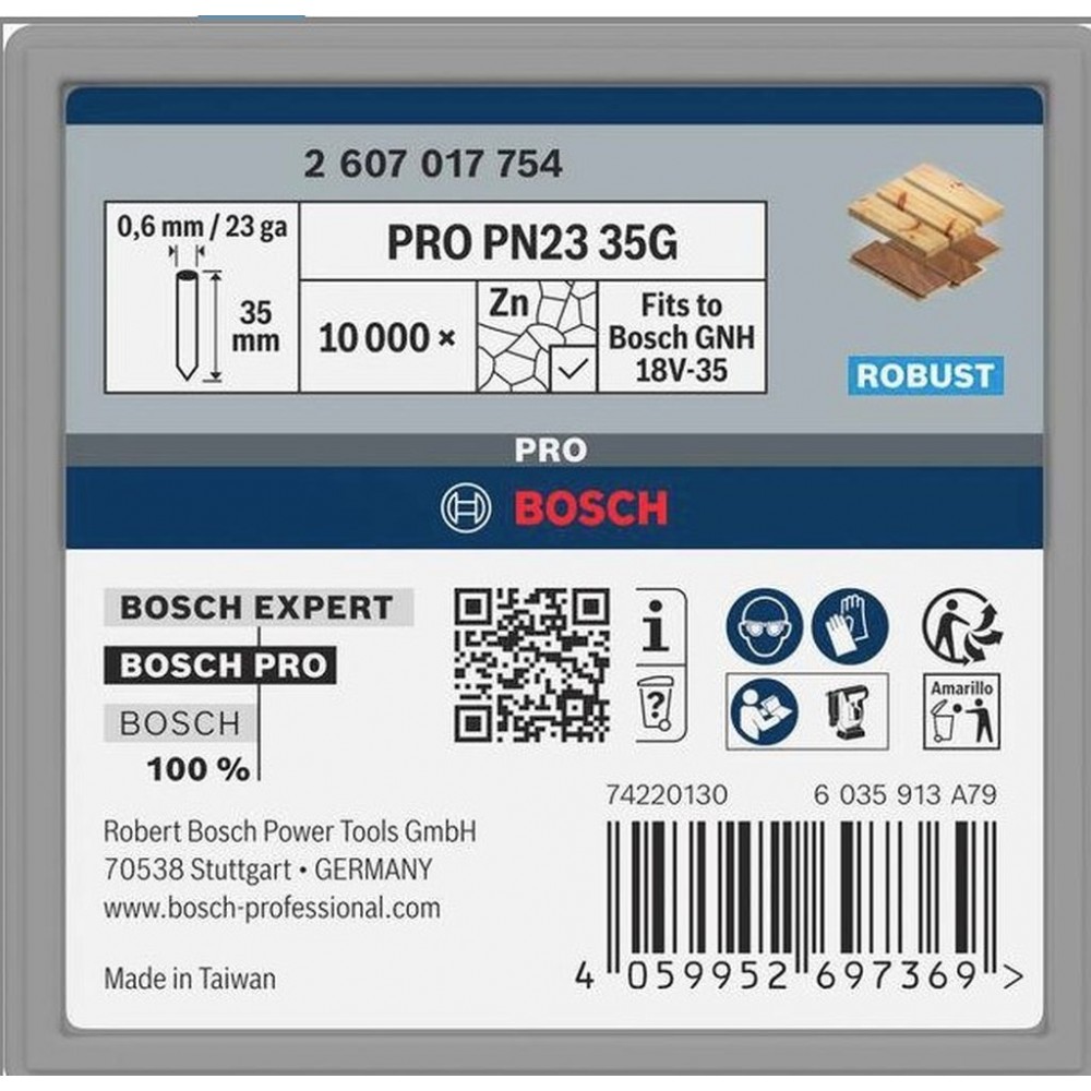 - Pour l’expédition en France, visitez BOSCH PRO PN23 G Pin, 0,65/23 g, galvanisé, 35 mm, 10 000 pieces 2607017754
