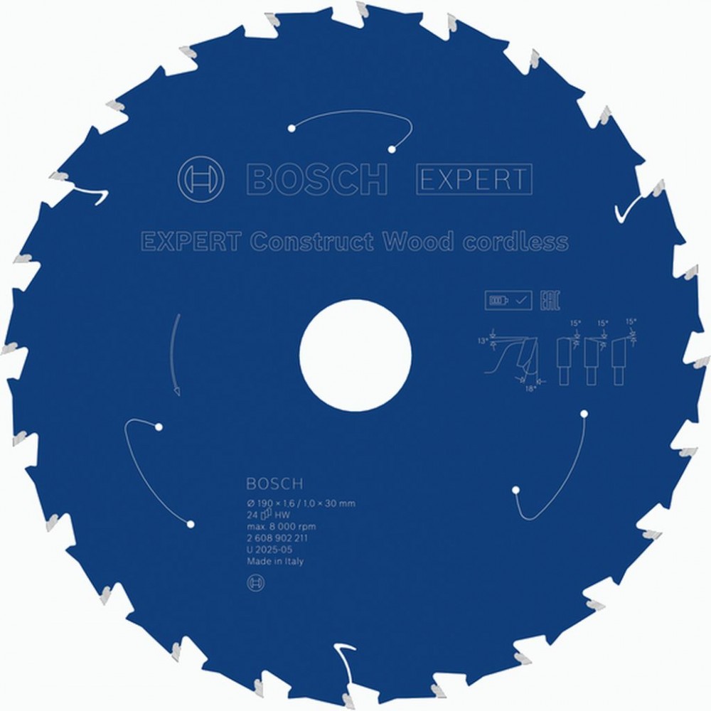 BOSCH Tarcza pilarska EXPERT Construct Wood cordless, 190 × 1,6 / 1 ×30 mm, T24 2608902211