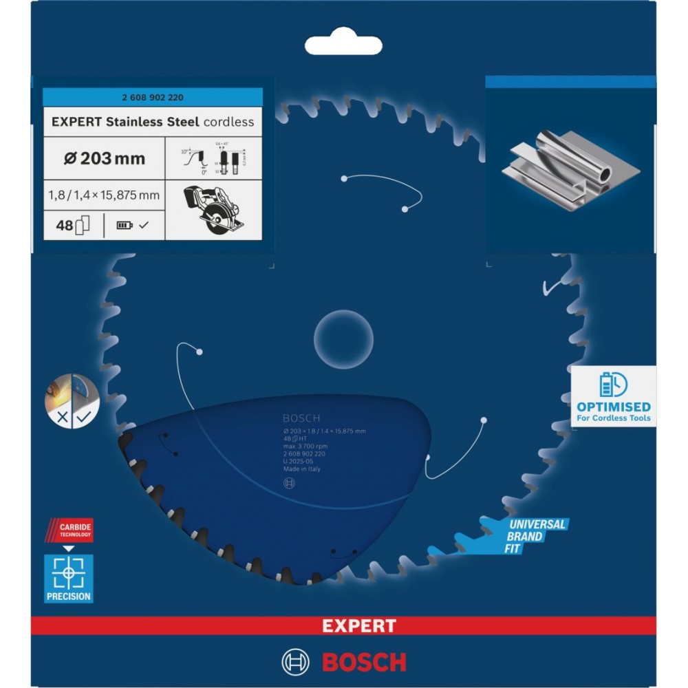 - Pro odeslání do Česka navštivte BOSCH EXPERT Stainless Steel cordless Pilový kotouč, 203 × 1,8/1,4 × 15,87 mm, T48 2608902220