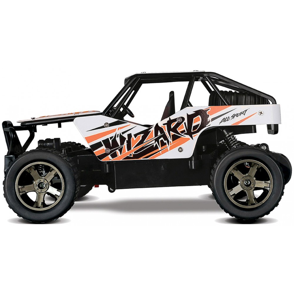 Samochód zdalnie sterowany RC Wizard został wykonany w skali 1:20 i ma wysokość 22 cm. Samochód nadaje się na łagodny teren i ma napęd na tylne koła. Jego maksymalna prędkość wynosi do 12 km/h. Kontroler ma zasięg do 50 metrów. Zabawka jest odpowiednia dla dzieci od 6 roku życia.Charakterystyka: