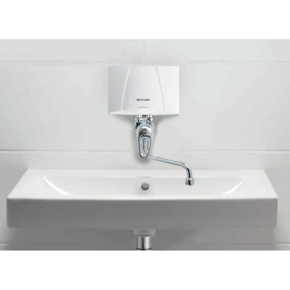 CLAGE M3/SME to mini elektryczny przepływowy podgrzewacz wody (bezciśnieniowy) przeznaczony do jednego punktu poboru – typowo nad umywalkę w łazience, toalecie lub w sanitariatach komercyjnych. Woda ogrzewana jest bezpośrednio podczas przepływu przez urządzenie, dzięki czemu nie magazynuje ciepłej wody i nie powoduje strat energii w trybie gotowości.