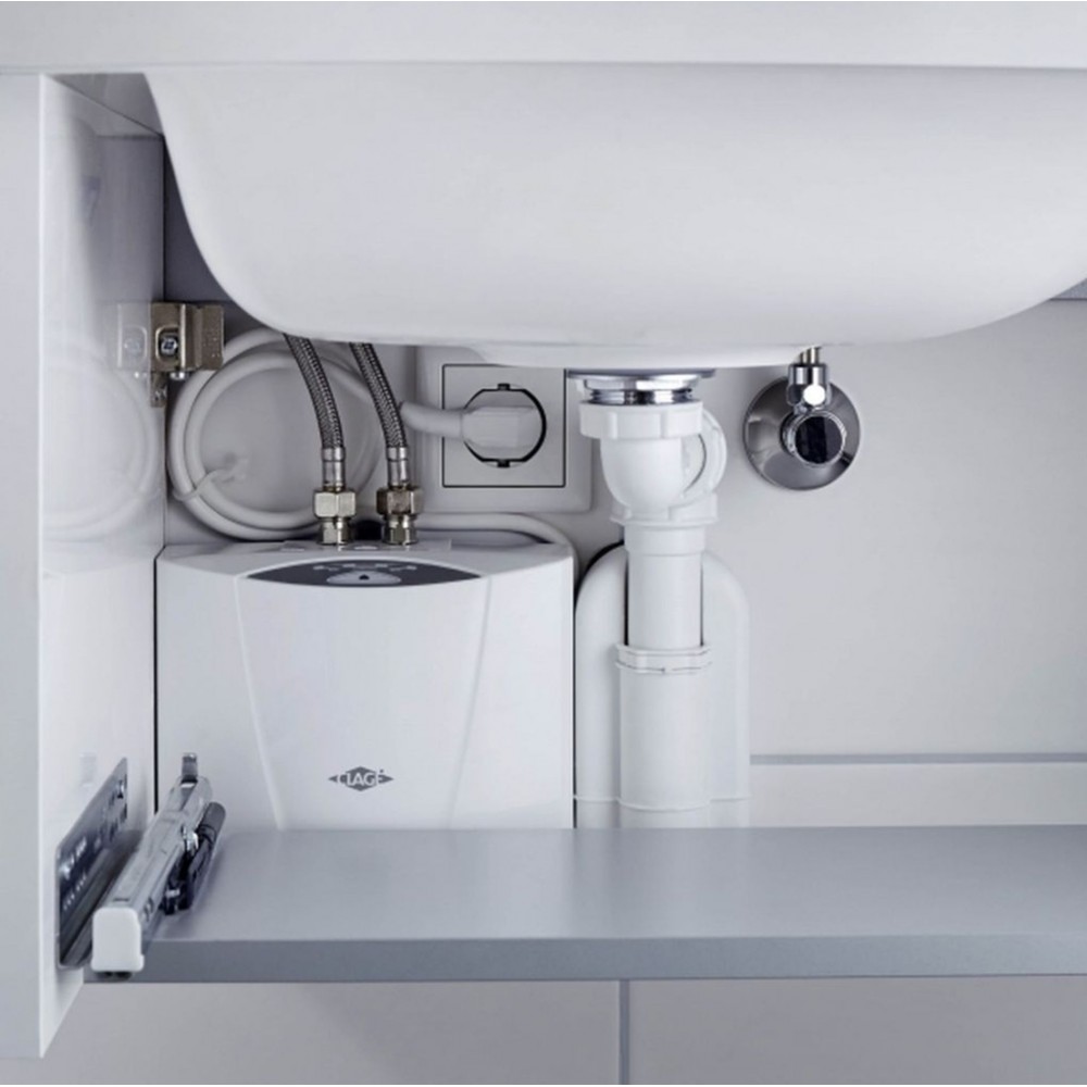 Kompaktowe wymiary umożliwiają montaż w szafce pod umywalką, gdzie urządzenie zajmuje minimalną ilość miejsca. Woda jest podgrzewana wyłącznie podczas poboru, co zapewnia oszczędność energii i przestrzeni. Idealny wybór do modernizacji mieszkań, nowoczesnych gospodarstw domowych oraz wszędzie tam, gdzie kluczowe są higiena, wyższa wydajność i prosty montaż.