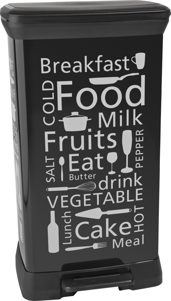 CURVER DECOBIN 50L KITCHEN Kosz na śmieci 39x29x73cm czarny 02162-K03Funkcjonalny metalizowany kosz na śmieci z kuchennym motywem, o pojemności 50 L.