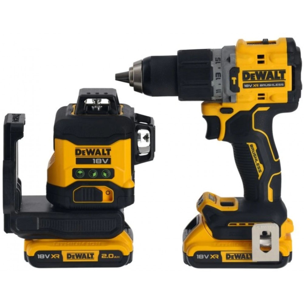 DeWALT DCK2095D2T Zestaw akumulatorowy 18V XR – wiertarko-wkrętarka DCD805 + laser DCLE34031 (2×2,0 Ah) TSTAK