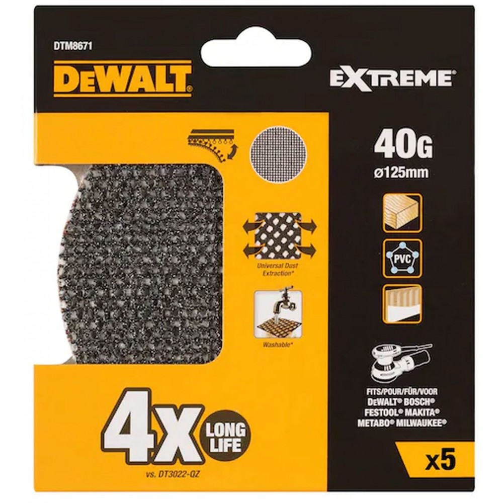 DeWALT DTM8671 – uniwersalna siatka ścierna EXTREME ROS 125 mm, ziarnistość 40 (5 szt.)