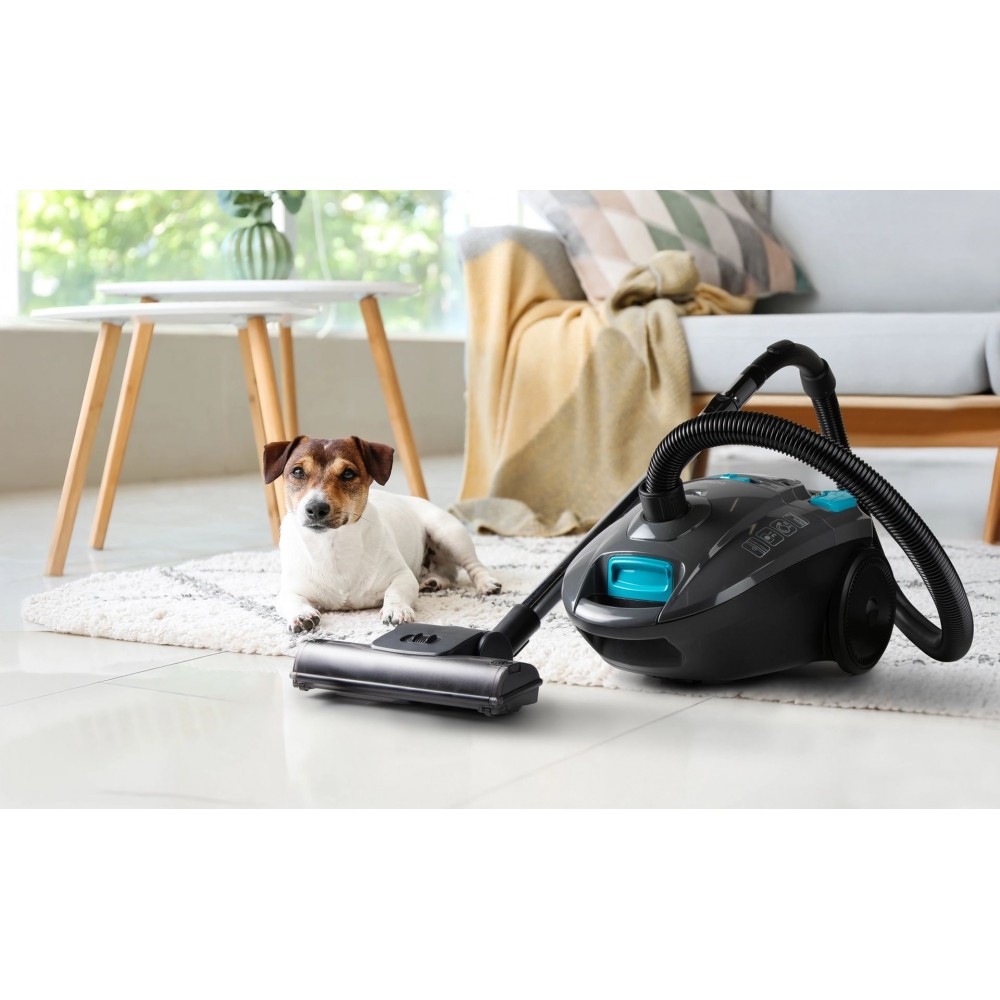 Ten odkurzacz workowy do domów ze zwierzętami został zaprojektowany z myślą o wygodnym sprzątaniu całego mieszkania. Długi kabel zasilający 7 m, zasięg pracy 10 m, teleskopowa metalowa rura oraz elastyczny wąż umożliwiają odkurzanie bez częstego przepinania między gniazdkami. Bogaty zestaw akcesoriów ułatwia sprzątanie podłóg, parkietów, mebli, wnętrza samochodu oraz trudno dostępnych miejsc.